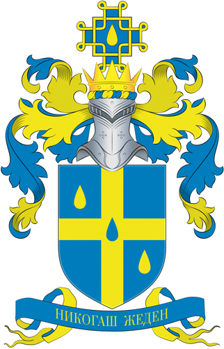 Од златна античка круна, на син македонски крст обрабен златно, златна капка